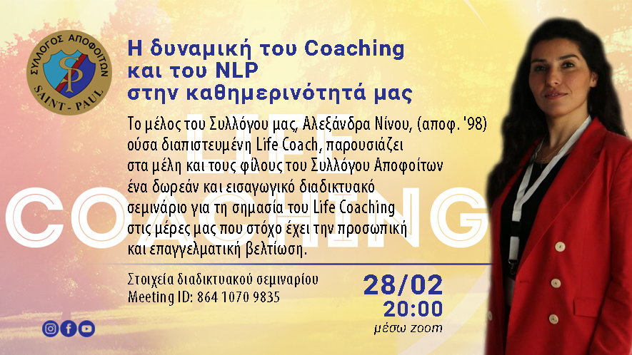 Διαδικτυακό Σεμινάριο: Η δυναμική του Coaching και του NLP στην καθημερινότητά μας