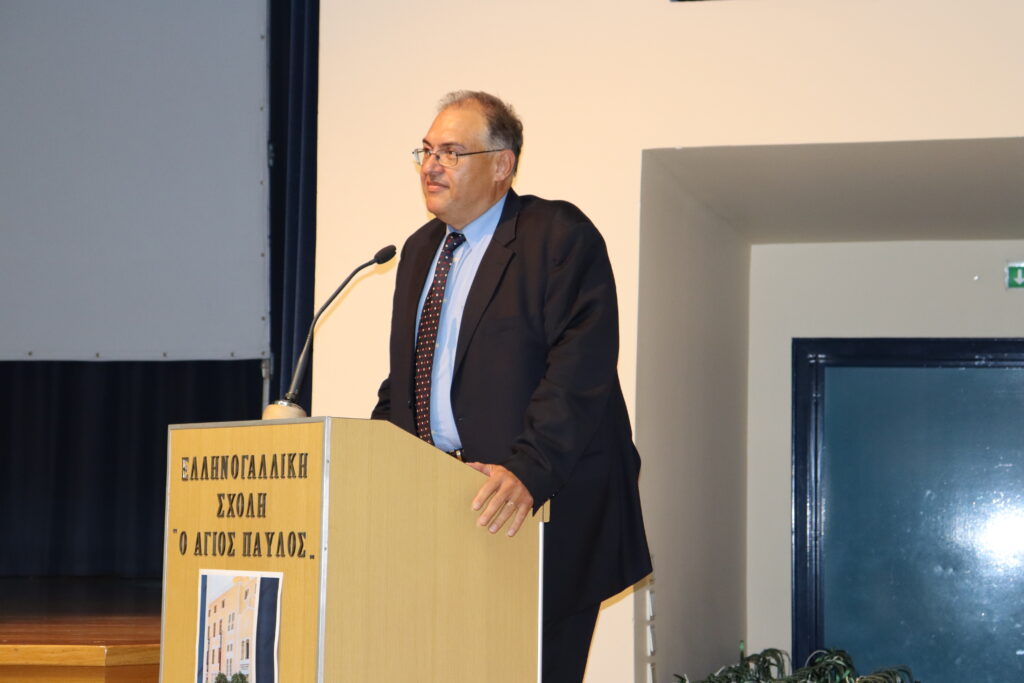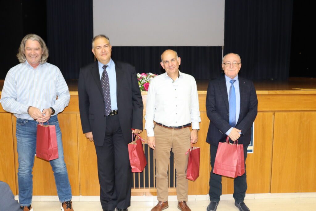 Η εκδήλωση ξεκίνησε με τον καθιερωμένο χαιρετισμό από το Διευθυντή της Σχολής, κ. Αντώνη Ρηγούτσο ο οποίος αναφέρθηκε στην ιδιαίτερη συγκυρία του εορτασμού των 130 χρόνων της Σχολής, στο έργο της Σχολής αλλά και στην αγαστή συνεργασία με το Σύλλογό μας ενώ την εκδήλωση χαιρέτησε και ο Πρόεδρος του Συλλόγου Αποφοίτων, Πέτρος Ιωσηφίδης όπου αναφέρθηκε συνοπτικά στις δράσεις του Συλλόγου, στο βάρος που δίνει ο Σύλλογος στην καλλιέργεια όχι μόνο της νοσταλγίας και της μνήμης αλλά με ματιά στο παρόν και στο μέλλον. Στη δημιουργία δηλαδή συνδέσμου ως προς την επαγγελματική διασύνδεση και πορεία των αποφοίτων κ.ο.κ.