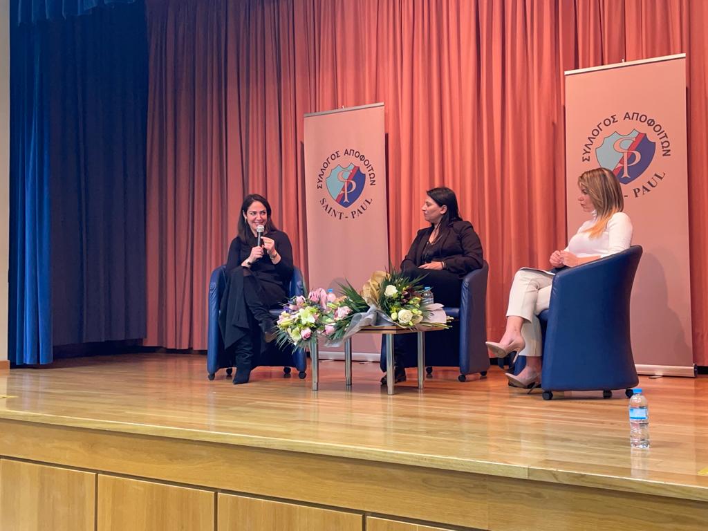 Από πλευράς της Σχολής, παρέμβαση – τοποθέτηση, πραγματοποίησε η Διευθύντρια του Γυμνασίου, κ. Αφροδίτη Εικοσιπεντάκη σχετικά με το ρόλο της γυναίκας στην εκπαίδευση.