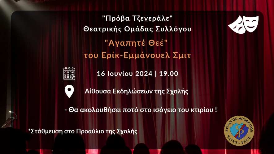 Θεατρική παράσταση: “12 ημέρες” Μια διασκευή βασισμένη στο βιβλίο του Ερίκ Εμμάνουελ Σμιτ “Αγαπητέ Θεέ”