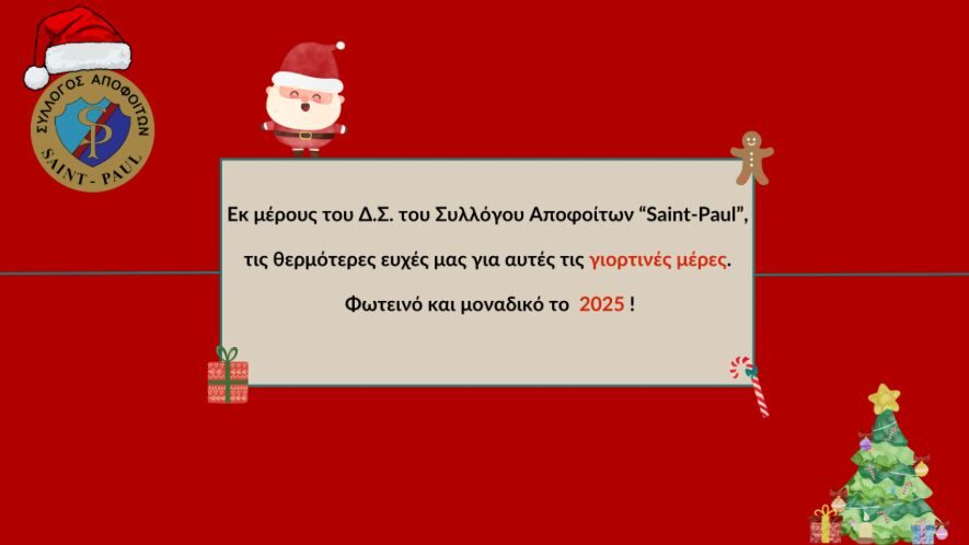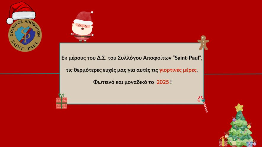 Να τα πούμε; (Καλά Χριστούγεννα) – vid. 24/12/2024 Νεα Να τα πούμε; Καλά Χριστούγεννα και καλές γιορτές σε όλες και όλους από το Σύλλογο Αποφοίτων!